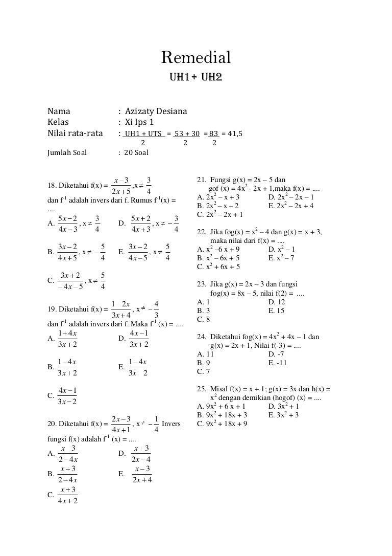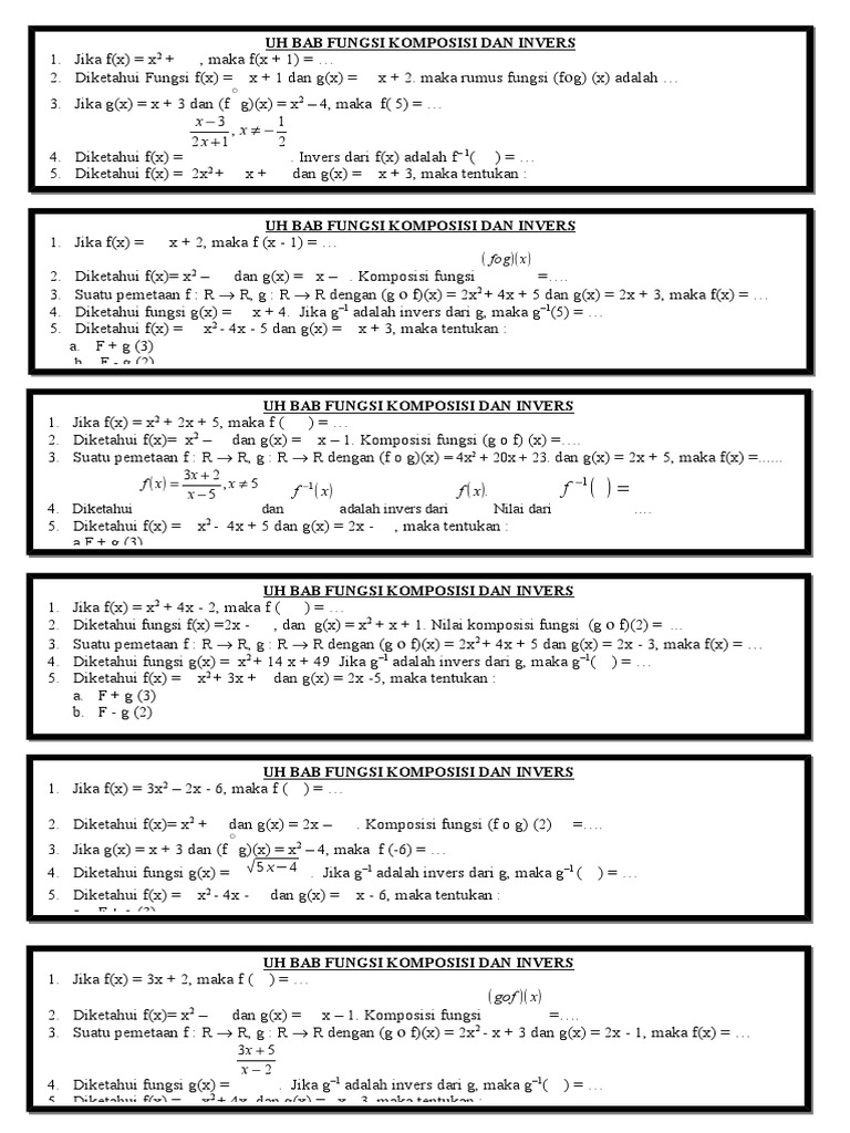 Sekarang akan dijelaskan lebih detil lagi. Berbekal fungsi f komposisi g (f o g)(x), kita akan mencari nilai dari fungsi g atau g(x). Jika suatu fungsi f(x)=x+2 dan g(x)=x+5 maka (fog) (1). F(x) = 2x + 3. Penilaian kegiatan pembelajaran indikator pencapaian kompetensi teknik contoh instrumen 3.